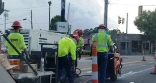 Main Street paving has been completed including painting the lines and arrows. This crew continued painting the turn lane at Main and Broad Street during the early evening thunderstorm that hit Loris on Tuesday, July 23. When asked these dedicated workers if they stop when there is lightning, the workers said they work rain or shine to complete their work.