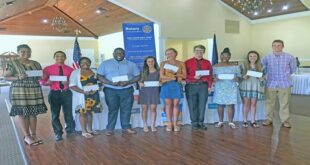 On May 21 the Rotary Club of North Myrtle Beach had the pleasure of giving $10,000 in scholarships to some North Myrtle Beach High School seniors. The Rotary Club looks forward to these outstanding students doing great things in the world and their community. Left to right are Timara Vereen, MJ Michaud, Adonya Pertell, Roger Hemingway, Kaylin Regan, Kamryn Spanburg, Wyatt Robledo, Jordan Lewis, Brianna Todd and Dawson Hardee. On June 25 the Rotary Club will be celebrating its 50th Anniversary.