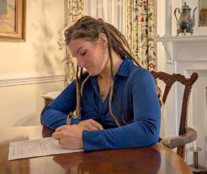 A new candidate for Loris City Council is Candice Grella as she sits at her dining room table completing the statement of intention candidate form. She introduced herself to residents and will share her platform in the coming weeks with an interview with the Loris Times.