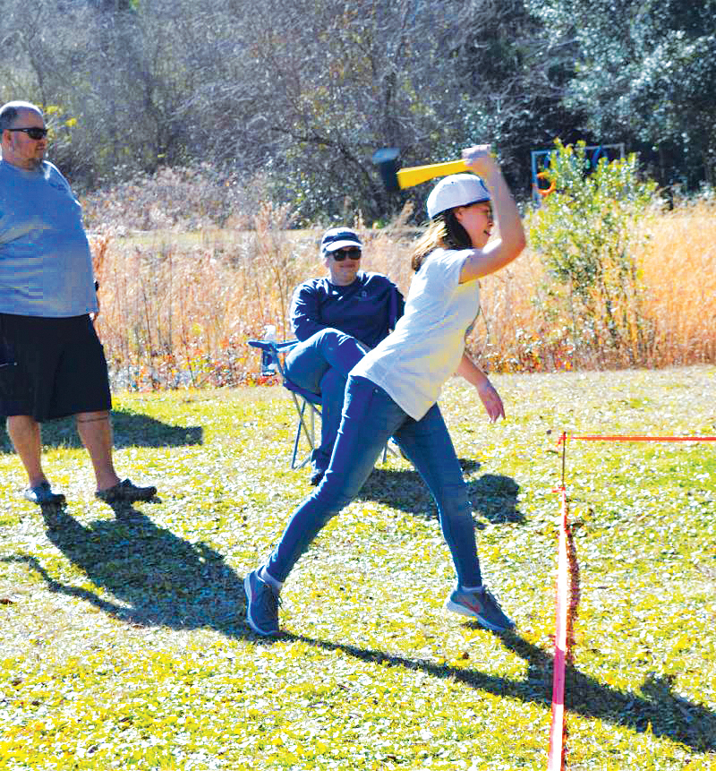 Ax throwing is a competition enjoyed by both men and women during the Critter Cooking event at Crossway Church.