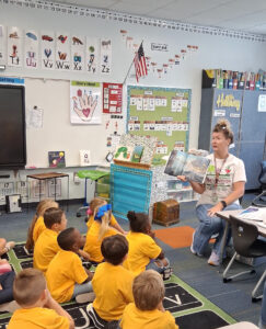 Belinda Roy showed the children how to recycle a one liter plastic bottle into a bird feeder. Each student was assisted in making their own bird feeder to take home. Margaret Graham, Bette Hurt, Joy Murray, Gail Norden and Belinda Roy were all there to lend a helping hand. The Ecotots were given stickers to decorate their bird feeders. YGC member Gail Norden prepared and distributed a bag of bird food to each child. All the children were happy to receive a coloring book and crayons about “Reduce, Reuse and Recycle”.