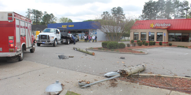 The accident occurred with a minivan striking and taking down the light pole in front of Hardee’s. Loris Fire Department, Horry County Fire and Rescue and EMS responded to the scene. Santee Cooper was alerted and arrived within minutes to assess the damage.