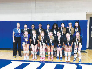 The NMB High School girls volleyball team smiles with their SCHSL State Runner-up medals after last Thursday’s championship match with Woodmont. The Chiefs battled the Wildcats through five sets before losing the match 3-2. It was the fourth straight year the Chiefs had been in the state finals. They won the state championship last year.