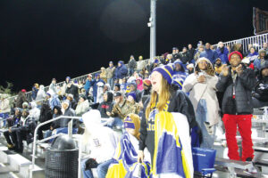 The stands were packed with Lions fans. Dressed in thick jackets, scarves, gloves, toboggans and blankets to keep warm, they enthusiastically supported the Lions as they faced off against the Oceanside Collegiate Academy Landsharks in the Class 3A state championship game last Friday night. The LHS Marching Pride Band made the trip to perform energetically, ensuring the Lions felt their presence.