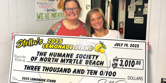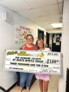 “Stella’s compassion, hard work, and dedication to giving back at such a young age is nothing short of inspiring,” said Tina Hunter, Executive Director of the Humane Society of North Myrtle Beach. “Her lemonade stand is a ray of sunshine in our community, and her support helps us provide the care, shelter and second chances our animals deserve.”