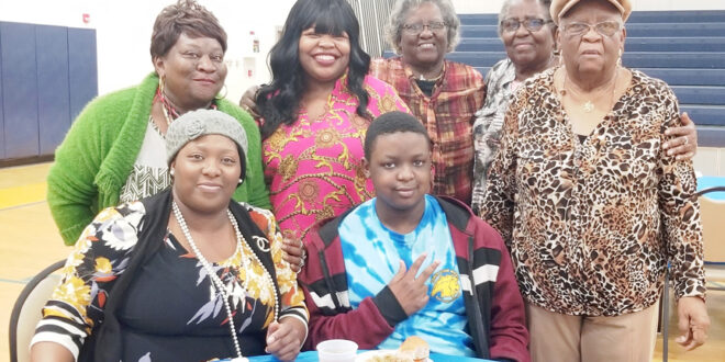 Eighth grader Jabarius Cook had five strong women come to eat lunch with him. The ladies were excited and are Cook’s mother and his five ‘aunties’. They filled the room with laughter as they visited with one another and ask how things are going in school. Two of them traveled from other cities just to visit their nephew and bring the additional support to his life.