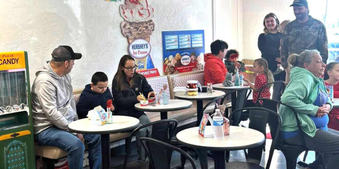 Jason Pridgen, the owner, announced the launch of his business by providing the first 200 children accompanied by a parent with a coupon book for 52 scoops of ice cream. Customers came in to order ice cream, including giant chocolate chip, chocolate chocolate chip, and Cookie Monster cookies to complement their Hershey brand ice cream. “Request us to warm the cookie and place a scoop of ice cream on top,” Pridgen mentioned. “We also offer individual pie pans in flavors like apple, cherry, and pecan, among others, which we can heat and serve with a scoop of ice cream, ala mode!” Strawberries are hand-dipped in chocolate made by Kandice Raye. “We use a special chocolate that sticks to the strawberries and gives a thick coating that makes them so tasty,” Grace, 16, helps with the scooping of ice cream and baking cookies. Hayden Morrical is the IT technician and official taster of all the goodies. Others who help at the shop are Nina Pridgen, Tina Fulton, Andrea Marie and Preston Skipper.