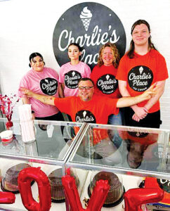 Charlie’s Place Ice Cream and Sweet Shop celebrated their grand opening on Valentine’s Day, attracting large crowds with an abundance of love that fueled the sales of chocolate-covered strawberries and 555 scoops of ice cream. Left to right are employees Kandice, Grace, Andrea and Preston. Picured center with arms out is Jason Pridgen, owner.