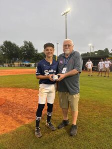 They had also won the series with only nine players still playing. Marvin Myers was hurt before the series and Donald Bean and Compher went down during the series. After a short celebration the Chiefs composed themselves, lined up along the base line and enjoyed the fruits of their labor.  They individually received their championship medal and ring, and then holding the DYB  2025 World Series “O” Zone Champions flag, hoisted their trophy for all to see, just them and their coaches, a spectacular moment and lifetime memory for 12 rec kids from North Myrtle Beach, South Carolina. It was after all the first ever championship and World Series win for the city’s recreation program.