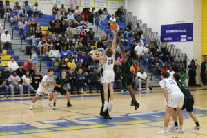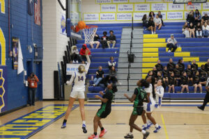 Mason Walker hit a three and Bass drove for two more points and the Trojans led 42-38. Walker’s jump shot made it 42-40. After a Trojan basket Primere Lewis made one of two free throws and a 44-41 Trojan lead with one minute left in the game. In the final frenetic 60 seconds the Chiefs battled for more and finally got a three-pointer from Walker to tie the score at 44-44. The Trojans couldn’t answer and it was overtime.