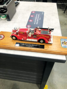 Susan Langley moved to North Myrtle Beach after her father’s passing in November 2024. Her father, John Langley, served as a firefighter for Fairfax County, Virginia, for many years. On December 16, 1997, he was awarded a fire truck plaque for his 25 years of service. His daughter Susan inherited this plaque after his passing along with other belongings.