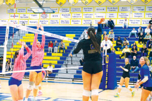 Clara Cloninger goes high for a kill that gave the Lady Chiefs a 22-5 lead in the second set of Monday’s SCHSL round two playoff match with Berkeley. The Chiefs won the match 3-0 moving into a third-round match on Wednesday at North Myrtle Beach.